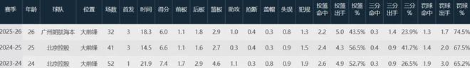 陈国豪出生于1999年8月12日,身高2米02&臂展2米05的大前锋,CBA生涯至今场均以29.8%命中率扔进0.3记三分球,苦于没有射程导致他的场上定位一直很尴尬,因为尺寸不足也没法当做正儿八经内线来使用。