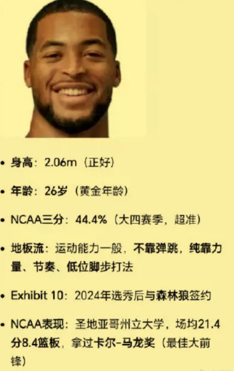 这不,传闻已久的第八外援已经正式浮出水面了。新大外叫杰登勒迪,虽说单听名字的确很陌生,但是他也曾获得过NBA短合同。其2024年参加NBA选秀虽然落选,但是随后他与森林狼队签下一份短合同。虽然并没有在NBA联赛登过场亮过相,但是他在NBA发展联赛效力了一个赛季,得到了历练。