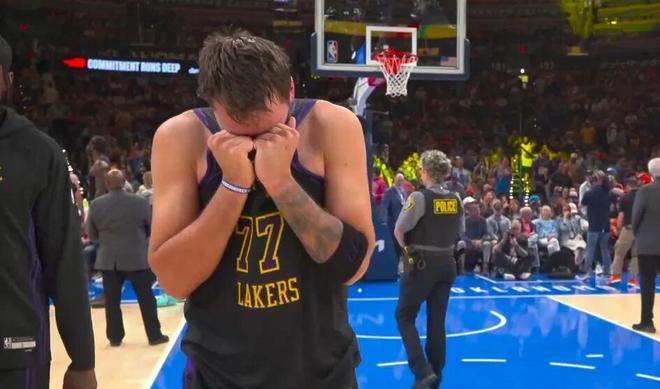 东契奇躺在地上,双手捂脸,神情极度沮丧,疑似伤情并不乐观。