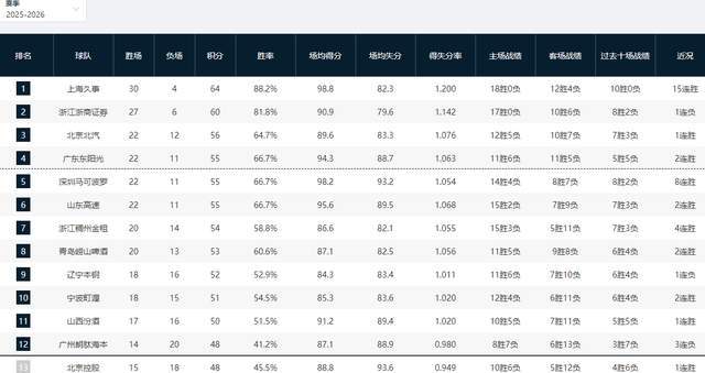 CBA常规赛已经打到第34轮,今晚已经结束了五场比赛的较量,福建男篮主场102-92力克青岛男篮,吉林男篮104-84大胜四川男篮,上海男篮102-92战胜天津男篮,北京首钢97-89力克广州男篮,浙江男篮81-76险胜辽宁男篮。经过这几场比赛的较量之后,CBA积分榜的排名变得更乱了,上海男篮十五连胜稳居第一,北京首钢则是杀回第三,目前第三与第八之间的差距只有两个胜场的差距,在常规赛最后冲刺阶段,积分榜的排名只会越来越混乱。