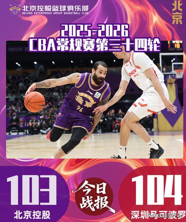 CBA常规赛,北控男篮103-104不敌深圳男篮。