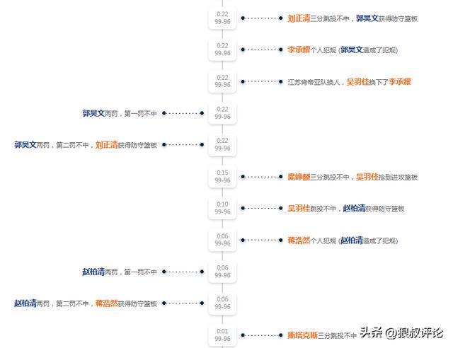 第四节最后22秒,同曦99-96江苏,刘正清强投三分不中,郭昊文获得篮板球,李承耀提前犯规,送郭昊文上罚球线,结果2罚不中。