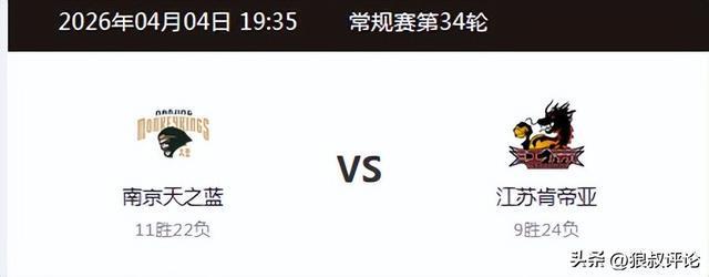 北京时间4月4日,CBA常规赛,江苏迎来德比大战,南京同曦对阵江苏肯帝亚。