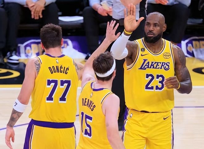 本赛季,卢卡出战64场,场均33.5分(联盟第1)+7.7篮板+8.3助攻(联盟第4)+1.6抢断(联盟第6)+4记三分球(联盟第1)。据NBA官网数据统计,当卢卡出战时,湖人队本赛季战绩为43胜21负,胜率高达67.2%;当卢卡缺阵时,湖人队本赛季战绩仅为7胜6负,胜率仅为53.8%。从某种意义上讲,卢卡的腿筋拉伤了,略等于湖人队的天塌了一半!如果湖人队想等来卢卡季后赛复出,里夫斯和老詹必须要共同扛起原本属于卢卡的重担。