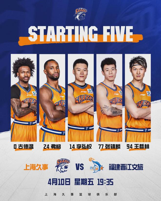 本场比赛,内线外援怀特塞德轮休,上海大鲨鱼派出王哲林、张镇麟、李弘权和双外援古德温、弗格的先发阵容。