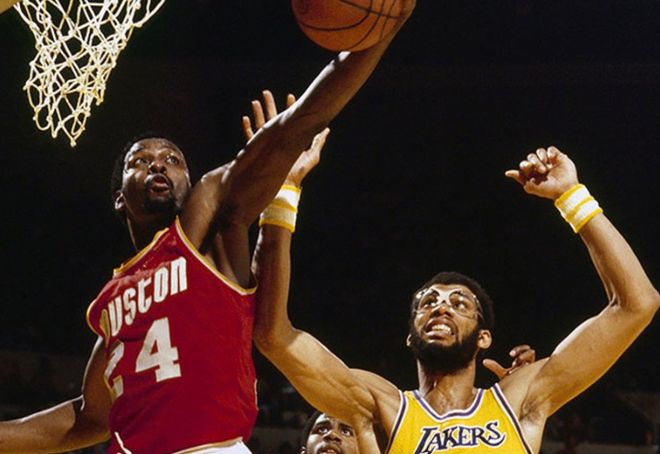 火箭和湖人第二次在季后赛相遇完成了“绅士横扫”,并且再度打进总决赛,与前一次不同的是,火箭的核心换成了奥拉朱旺,但对上的湖人内线核心依然是贾巴尔,两人各自在系列赛里场均拿到31分11.2篮板2助攻2.2抢断4封盖,27分6.8篮板3.4助攻2.4封盖,奥拉朱旺带着火箭以4-1的总比分击败湖人,从西决晋级。
