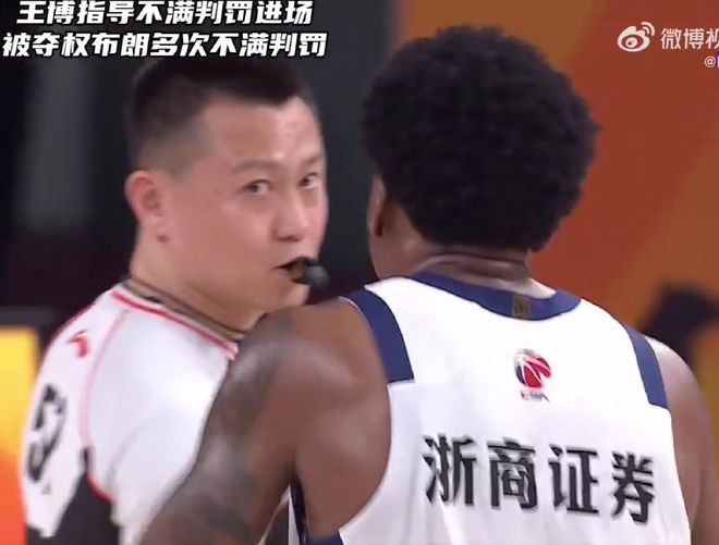 在上一回合,布朗被犯规,裁判没有吹罚,当时的比分是89-93,广厦落后4分,这两个回合是至关重要的,王博指导认为裁判吹罚标准不一,不满山西主场裁判员的判罚,认为对手有犯规动作为什么吹了本方进攻犯规,于是直接从进了场地内和裁判理论。