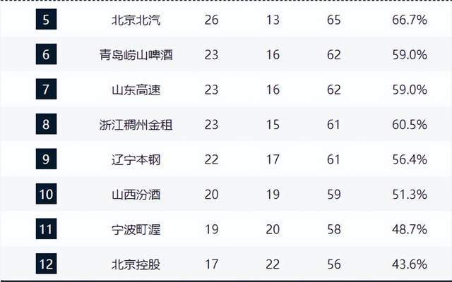 青岛队23胜16负位列第六,山东队23胜13负遭遇四连败,跌至第七,前8席位岌岌可危。尤其是本轮,居然输给了北控队,也不知道邱彪搞什么幺蛾子,不想干就直说,别耽误山东队夺冠大计。浙江队23胜15负因少赛一轮暂列第八,实际竞争压力远大于排名所示。