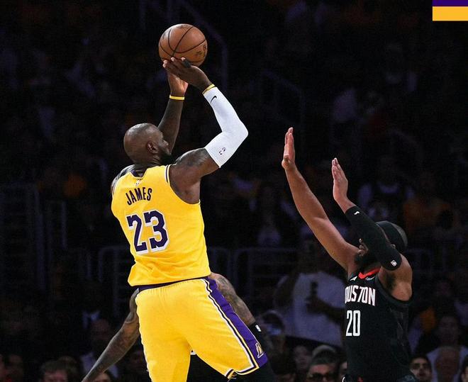 半场比赛战罢,湖人50-48领先火箭2分。下半场比赛开始,易边再战,谢泼德后撤步三分球突施冷箭,揭开第三节比赛序幕,艾顿在篮下连续的拼抢到进攻篮板,飞身补篮得手,詹姆斯背身坐打,面对年轻人毫不留情,翻身跳投砍下两分,小史密斯的侧翼三分火速跳投一击命中,八村塁不甘示弱,45度角追身三分立马回应一球,肯纳德的底角三分空位出手同样也有,拉拉维亚长驱直入刚猛上篮制造杀伤,站上罚球线两罚全中,湖人通过连续的冲击篮下制造杀伤,开始占据主动权,取得10分左右领先优势,三节比赛打完,湖人75-66领先火箭队9分。