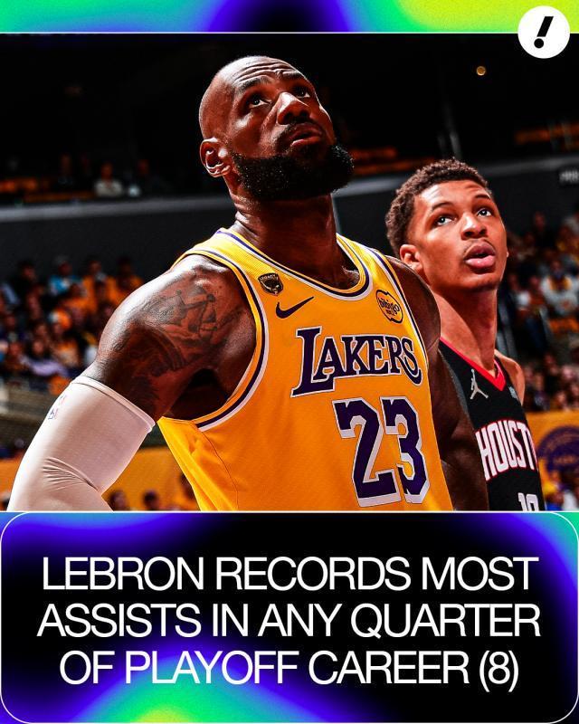 作为球队的进攻大脑,詹姆斯在第一节就奠定了基调。配合湖人百发百中的中投表现,詹姆斯首节送出8次助攻,创造个人生涯季后赛单节助攻纪录。在以防守著称的火箭面前,湖人首发5人轻松写意地在各个位置发炮,全队前15个进球有14个来自助攻,衬托着火箭的年轻小伙子们如同莽夫。