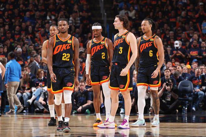 另外,这支雷霆被看好的点就是他们出色的防守能力,阵容里有很多球员都达到了最佳防守阵容的水平。其中,霍姆格伦入选了本赛季最佳防守球员的前三名,亚历山大和杰伦都是攻防一体的球员,多尔特、华莱士、卡鲁索都是本赛季最佳防守阵容的热门人选。可以说,这支雷霆队的防守资源实在是太丰富了,每个位置上都有精英级别的防守球员,是他们成为联盟当中攻防最均衡的球队。