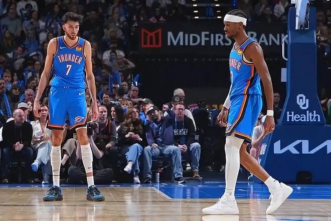前几日,ESPN就给出了本赛季球队的夺冠概率,其中雷霆队夺冠概率达到了43%,可以说是断层领先。通过这一场与太阳队的对决,也证明了雷霆被看好的原因,这支年轻的队伍攻防两端确实是独一档。首先在进攻端有亚历山大、杰伦-威廉姆斯和霍姆格伦三巨头兜底,米切尔、乔、麦凯恩也是不错的得分手,常规赛期间雷霆队的场均得分就排在了联盟前五位。