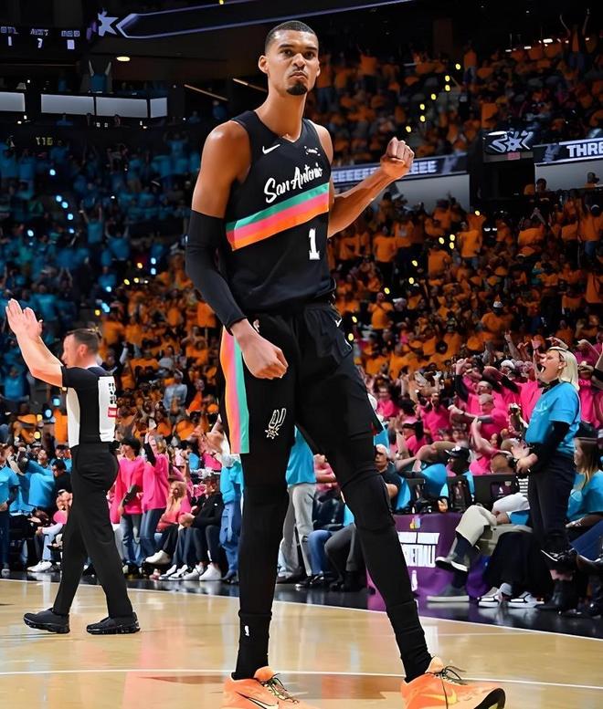 文班亚马作为2023年的状元秀,2米24的身高配上2米48的臂展,拥有NBA历史顶级的运动能力,还能像后卫一样运球,生涯第一个赛季就能交出场均21.4分10.6篮板3.9助攻3.6盖帽的恐怖数据,短短两个赛季就将马刺从一支鱼腩球队带成了本赛季的争冠级球队。就在刚刚文班亚马也迎来了个人生涯的季后赛首秀!本赛季马刺以西部第二的成绩打入季后赛,首轮面对同样以年轻球员为主的波特兰开拓者队,文班亚马全场比赛登场33分钟,投篮21中13,三分球6中5狂砍35分5篮板1助攻2盖帽,带领马刺轻松战胜开拓者取得季后赛开门红。