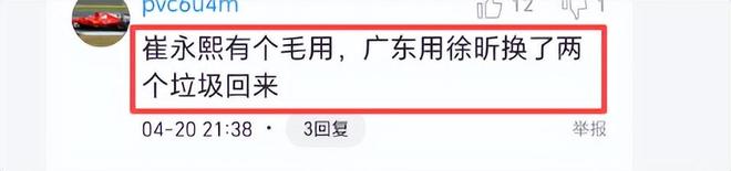 崔永熙在第二阶段复出后,打了14场比赛,只有4场得分上双,其余10场得分均是个位数,最近7场更加糟糕,场均仅有4.4分。须知,崔永熙和焦泊乔是广东队用徐昕等四名球员和大量现金换来的国手。可是谁知买了一个废人。怪不得球迷评论说,“崔永熙有个毛用,广东用徐昕换了两个垃圾回来”。看来崔永熙大伤之后,或许真的回不到从前了,爆发力明显下降,这表现可能比张皓嘉和杜润旺还差。不知崔永熙能否回到从前,希望加油吧!诸位,你对崔永熙的表现有何评价?请说出来。