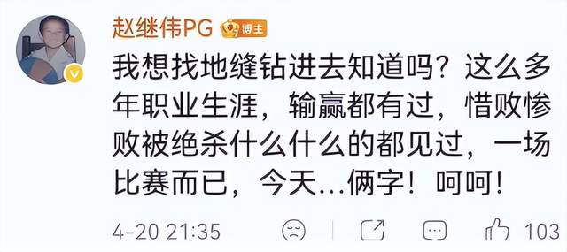 赵继伟本场出战15分45秒,9投5中,贡献11分、4助攻、2抢断,个人效率尚可,但情绪失控成为转折点。赛后,他在社交媒体仅以“呵呵”二字回应,引发全网热议。随后他进一步补充:“我想找地缝钻进去……这么多年,输赢都见过,今天……俩字:呵呵!”字里行间透出深重的挫败与无力感,令无数球迷动容。评论区中,大量支持者留言:“继伟辛苦了”“保持健康最重要”“问心无愧就好”,表达理解与慰藉。