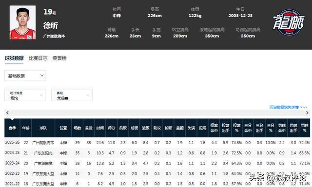 新赛季至今,徐昕代表广州出战39场比赛,场均得到11分8.4篮板1.9封盖,全部都是职业生涯的新高,尤其是投篮命中率高达74.8%,若是不出意外,徐昕将会是新赛季最具进步球员强力竞争者。