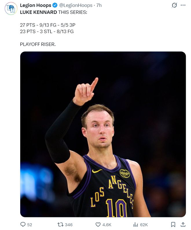 湖人媒体:我的天啊,肯纳德还在高水平赛场继续进化,继续翱翔。