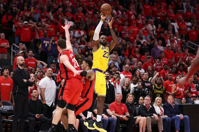 后面申京上篮不中,詹姆斯收下篮板球后火速喊暂停。此时,湖人还剩下1.2秒的时间,也意味着一次绝杀机会。绝杀球给到了詹姆斯,后仰三分出手,弹道看起来没问题,只可惜力度差了些!这么一来,两队进入加时。湖人在詹姆斯和八村塁的发挥下迅速取得3分领先,虽然申京做出回应,但斯玛特三分还以颜色。随后,两队再次陷入拉锯战。一次地板球拼抢,詹姆斯拼尽全力争球,随后的跳球再次成功。而斯玛特的发挥,直接影响了比赛走势,先是补篮,随后两罚全中,直接将分差扩大至4分!而火箭队连续进攻不中,随着斯玛特再次命中罚球,湖人锁定胜局。