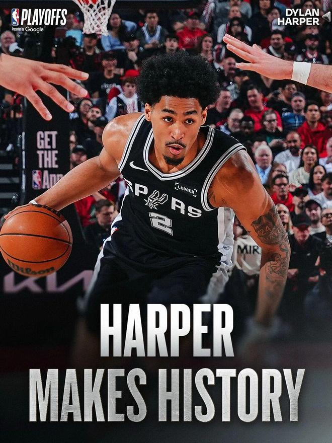 这场关键胜利,马刺新秀迪伦哈珀打出了生涯最强一战:替补出战29分钟,投篮12中9,三分5中4,罚球6中5,得到27分10篮板3助攻1抢断1盖帽。