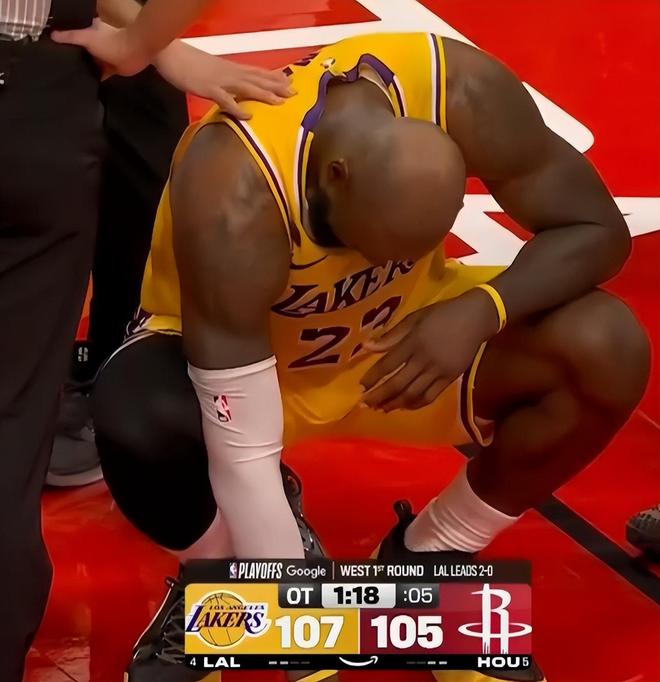 41岁的勒布朗实在是太累了,这场比赛詹姆斯在末节、加时赛不止一次累的蹲在地上,还有一次是直接坐在了场边,41岁能鏖战45分钟真的太不容易了。湖人全队只有肯纳德45分22秒比詹姆斯多18秒。