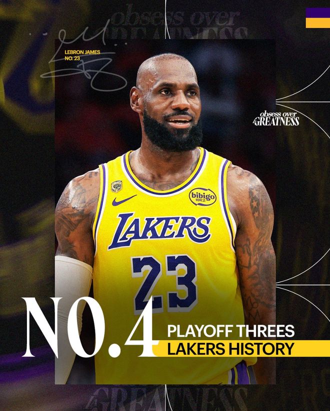 5.湖人队史季后赛三分命中数历史第四;