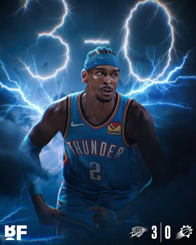 狄龙又砍33分,已经是太阳最硬气的球员,布克和格林都软得一塌糊涂。亚历山大轰下42分8助攻,率领雷霆121比109轻松击败太阳,总比分3比0领先。真的没眼看了,赶紧横扫吧。