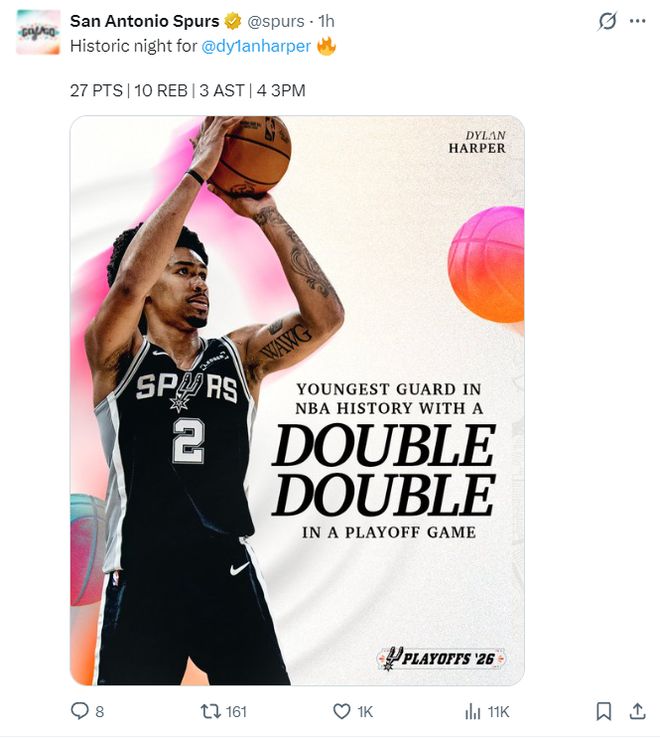 赛后马刺主帅米奇谈到哈珀:就像你们看到他的数据那样他很出色,在季后赛的对抗中他的身体天赋肉眼可见,强度越大越能看出一个球员的基本功,有天赋、有能力的球员就能接管比赛。