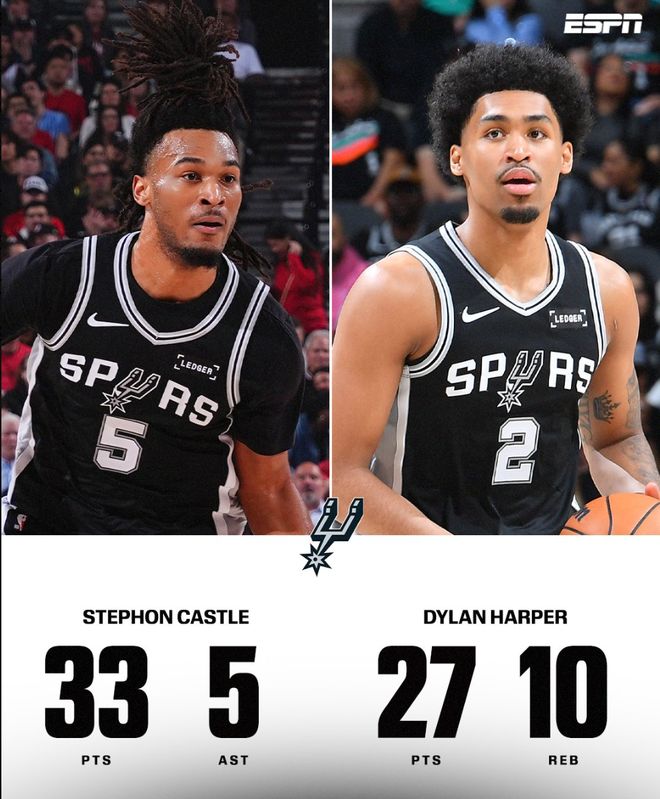 这场比赛是两位年轻球员的舞台,21岁的卡斯尔与20岁的哈珀合砍60分,这两人的视觉冲击力都很强,而且一个在末节拿到11分,一个在末节拿到10分,这两人末节的得分就等于开拓者全队。