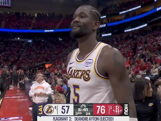 北京时间4月27日,在湖人客场对阵火箭的首轮G4,第三节中段湖人中锋艾顿因为肘击申京脖颈部位,导致直接被吹罚二级恶意犯规驱逐离场。艾顿被驱逐之前,已经12中9得到19+10的两双数据,成为湖人前两节半表现最出色的球员。