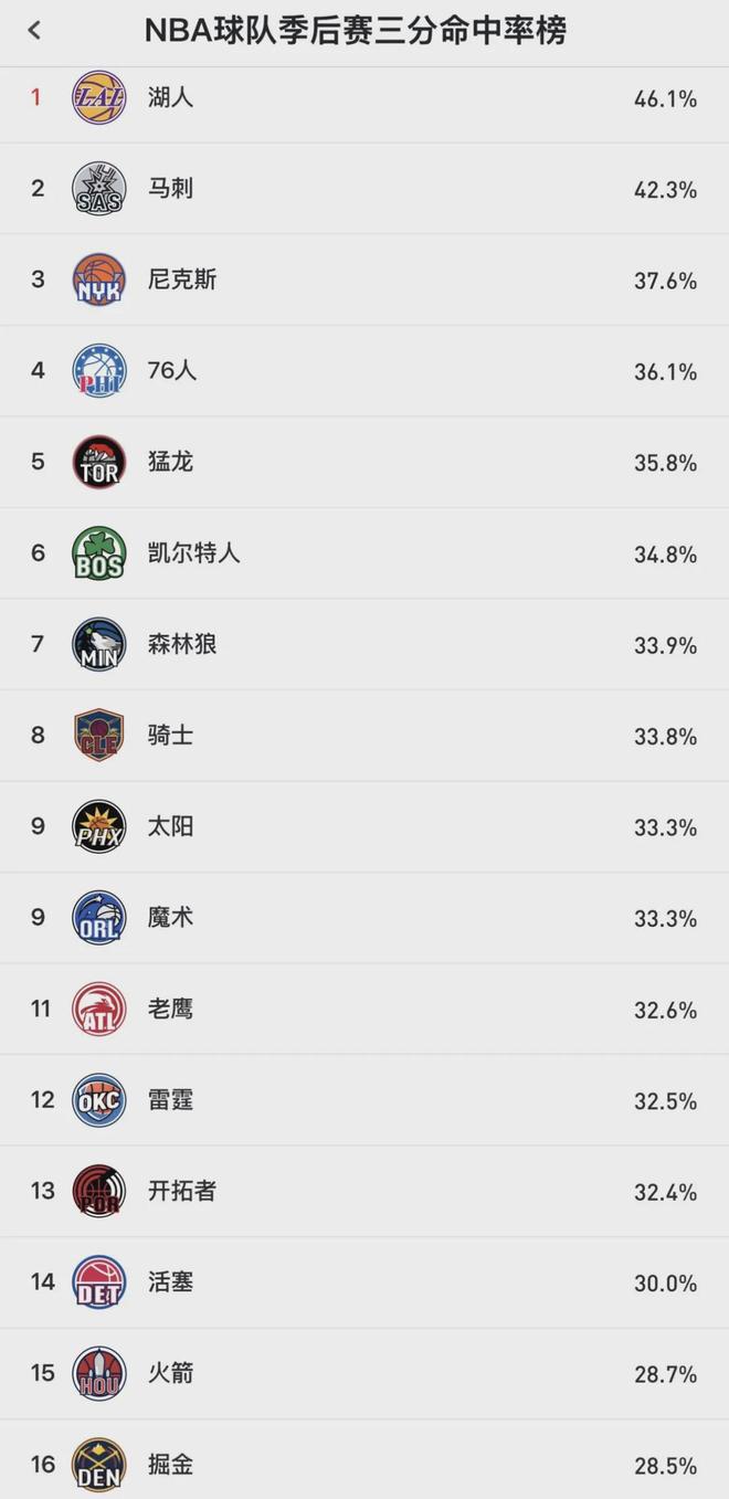 再看看湖人,系列赛前三场投篮命中率51.2%,三分命中率46.1%,这两项数据都是联盟第一,而且是断档式领先。这三场比赛,湖人投篮次数一共比火箭少了63次,依然取得了3比0领先,由此可见火箭的命中率到底有多差!