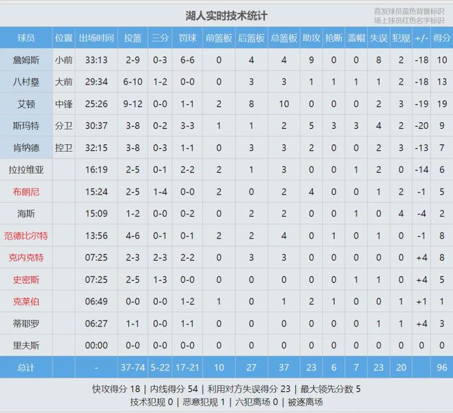 湖人被打爆!9中2+8次失误!詹姆斯尽力了