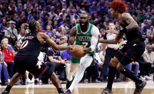 凯尔特人稳了——东部首个3-1,前四强中最早拿到赛点。塔图姆、布朗、普理查德三人组,直接把76人防线撕得稀碎。而76人呢?马克西G3命中率不高,G4又没回暖,全队像被抽了筋。