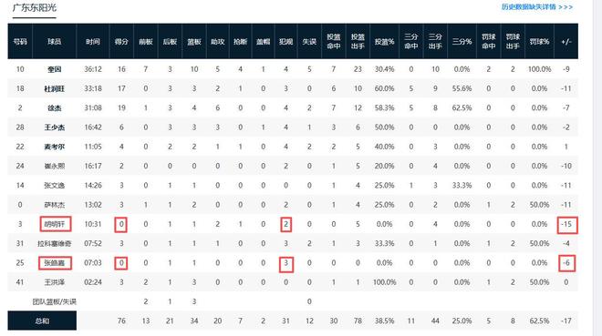 另一个让人失望的是张皓嘉,他曾多场被杜锋委任打首发,或是末节打满全节。可是他今天辜负杜锋厚望了,打了七分钟,没有一次出手,也是吞吞蛋,除了不得分外,还3次犯规,这3次犯规主要是下半场开场后在极短的时间内犯规的,后来遭到杜锋弃用,仅打7分钟,全场也是毫无存在感。