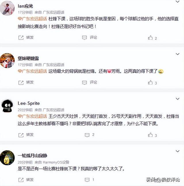 赛后,不少球迷在各大网络平台喊出了杜锋下课的各种声音。