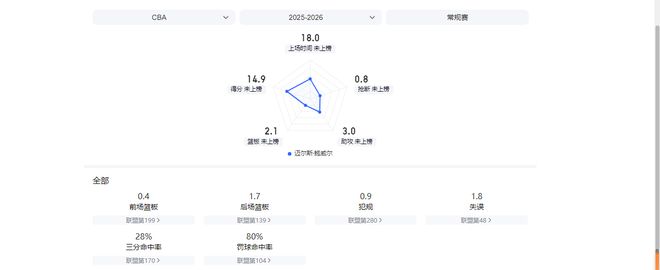 另外,他第一阶段场均仅能送出3次助攻,完成0.8次抢断,同时会出现1.8次失误。也就是说,鲍威尔作为外援,无法在防守端和组织端为球队贡献,同时极低的三分效率会让他每场比赛浪费不少球权。