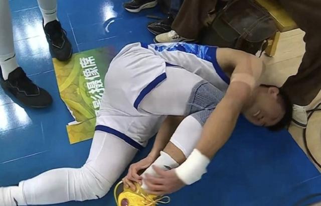 在首节比赛进行到山西14-5广厦时,广厦后卫孙铭徽突破落地时不慎崴脚,他的表情十分痛苦,随后被队友背回了更衣室。