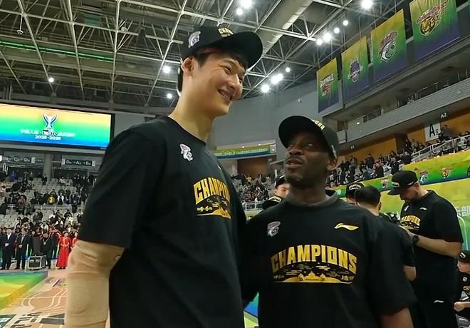上海队蝉联联赛杯冠军!200万奖金到手,洛夫顿被赛会评为MVP。2米14的王哲林,笑得很开心,很灿烂……
