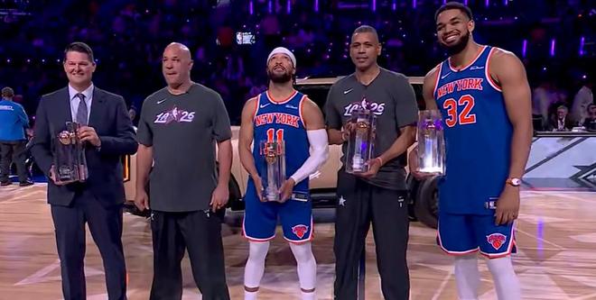 NBA全明星周末进入第二天,在投篮之星比赛里,由布伦森、唐斯和阿兰-休斯顿组成的尼克斯队轻松夺冠。在决赛里马盖蒂虽然连进超远三分帮助队伍拿到38分,但尼克斯队发挥更为出色,他们拿到47分,以绝对优势夺冠。