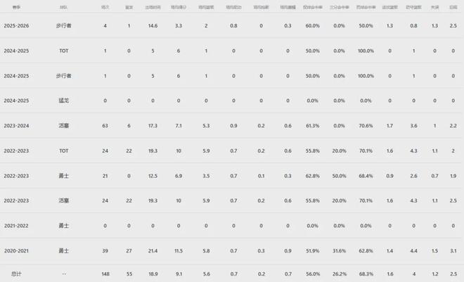 离开勇士之后,怀斯曼一度有着高光表现,比如22-23赛季后半程在活塞出战24场首发22次,场均上阵25.2分钟就能贡献12.7分8.1板,然而昙花一现罢了。