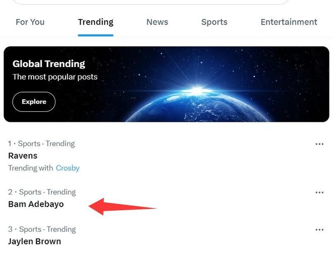 因为阿德巴约恐怖的首节表演,他也登上了全美第二热搜,第二节的他手感有所下滑,8中3+三分7中6拿到12分1篮板1抢断,半场已经拿到43分。