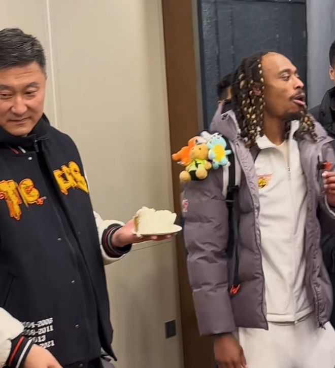 在许愿结束之后,胡明轩就开始分蛋糕了,第一块和几个年轻球员一样,先是给到了杜锋。因为胡明轩就是杜锋一手培养起来的,对于这种关系,胡明轩肯定非常感谢他的培养,这基本上已经成为广东庆生的基本环节了。