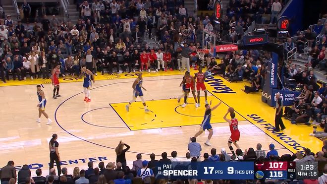 勇士换了多人防守,但没有一个人能有效限制布泽利斯,三节结束,布泽利斯在油漆区9次出手全部命中,拿下24分。