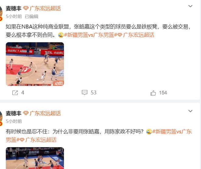 其中,要说骂的最狠的,还得是媒体人麦穗丰,看到张皓嘉在比赛期间的多次灾难性表现,一向支持广东队的麦穗丰也忍不住发文嘲讽,表示:如果在NBA这种纯商业联盟,张皓嘉这个类型的球员要么是铁板凳,要么被交易,要么根本拿不到合同。
