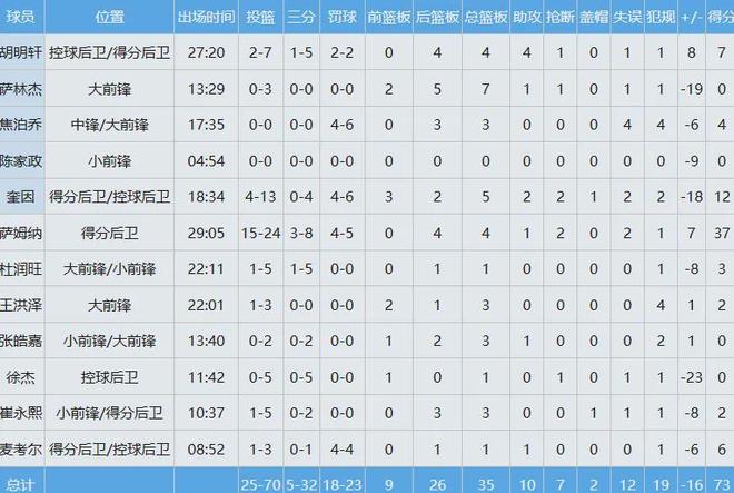 辽宁队数据如下: