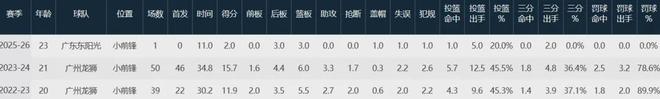广东队数据如下: