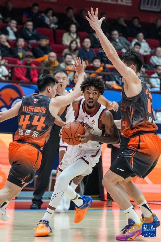 3月16日,山东高速队球员珀塞尔(左)在比赛中突破。新华社记者 朱峥 摄