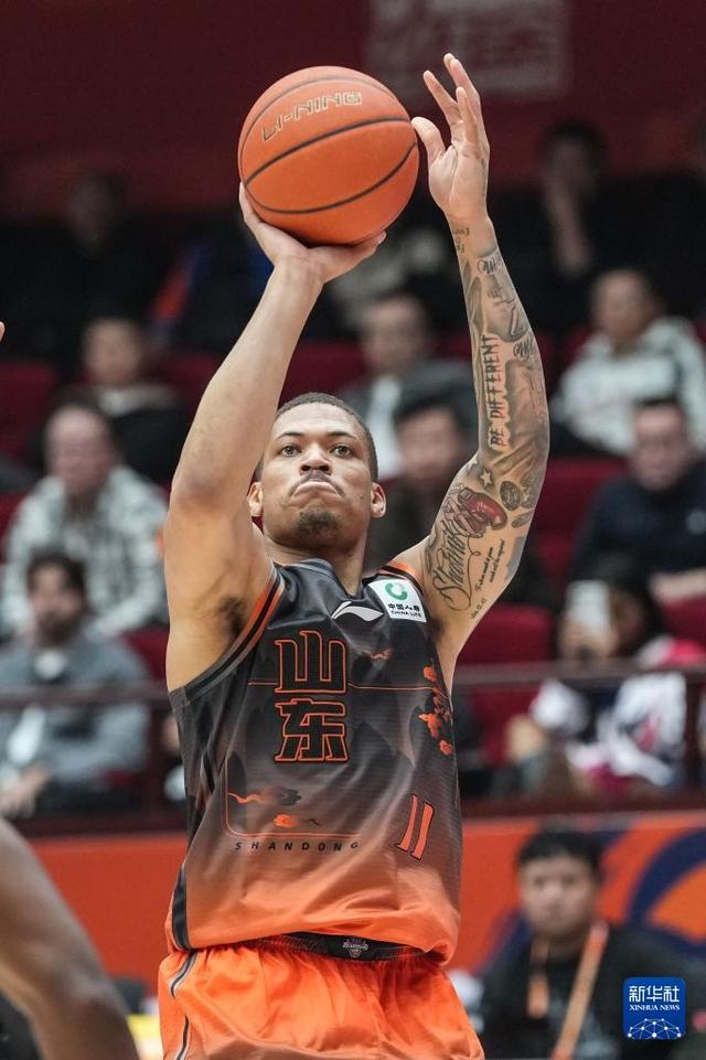3月16日,山东高速队球员约翰逊在比赛中投篮。新华社记者 朱峥 摄
