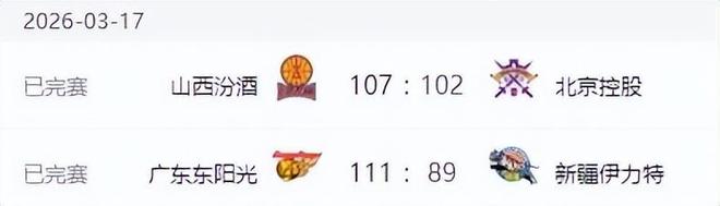 CBA第27轮的比赛打完了两场,两场比赛都打得非常激烈。广东男篮在和新疆男篮的比赛中的表现非常出色,攻防两端都非常强硬,以111-89的比分大胜对手,为前几天客场输给新疆男篮完成了复仇;山西男篮和北控男篮的比赛也非常精彩,结果是山西男篮以107-102的比分取胜,送给了北控男篮两连败。
