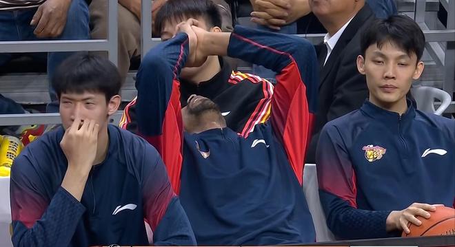 下半场萨姆纳照例来到先发,胡明轩麦考尔继续负责进攻组织,效果依旧不理想,5中2开局仅拿到4分,李炎哲多次抢下前场篮板补进,新疆打出一波11-4缩小分差,萨姆纳一神带四坑,完全带不动。