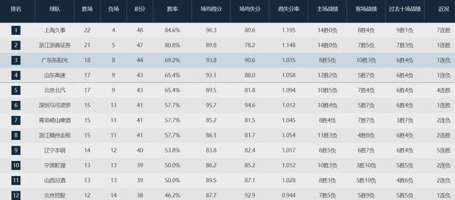 当前CBA战绩排名如下: